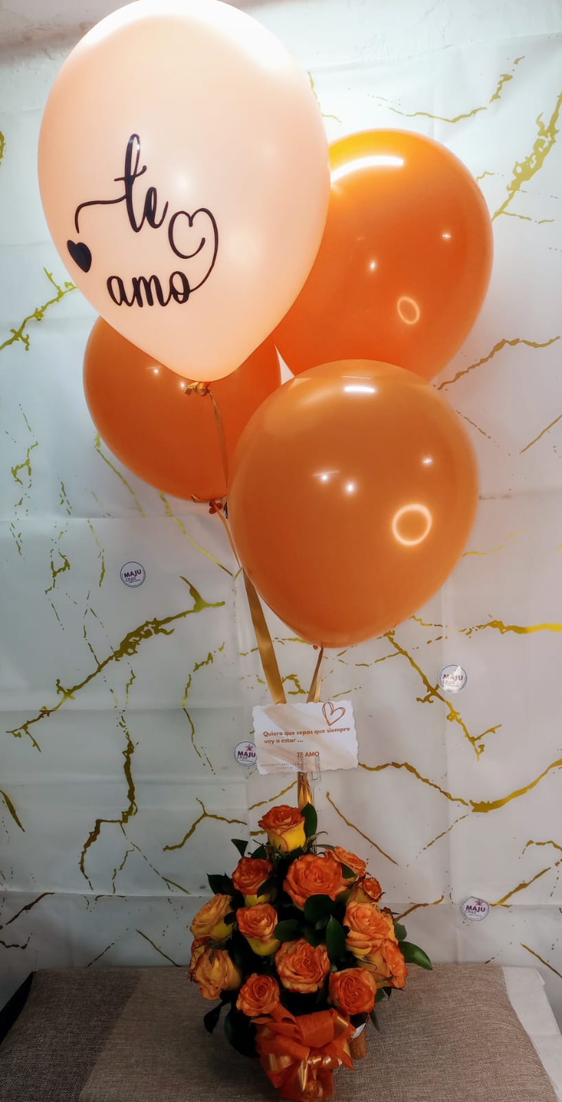 Elegante ramo de rosas vibrantes x20, ideal para expresar amor y alegría en cualquier ocasión especial. Incluye una tarjeta personalizable para tu mensaje más sincero y cuarteto de globos en helio.