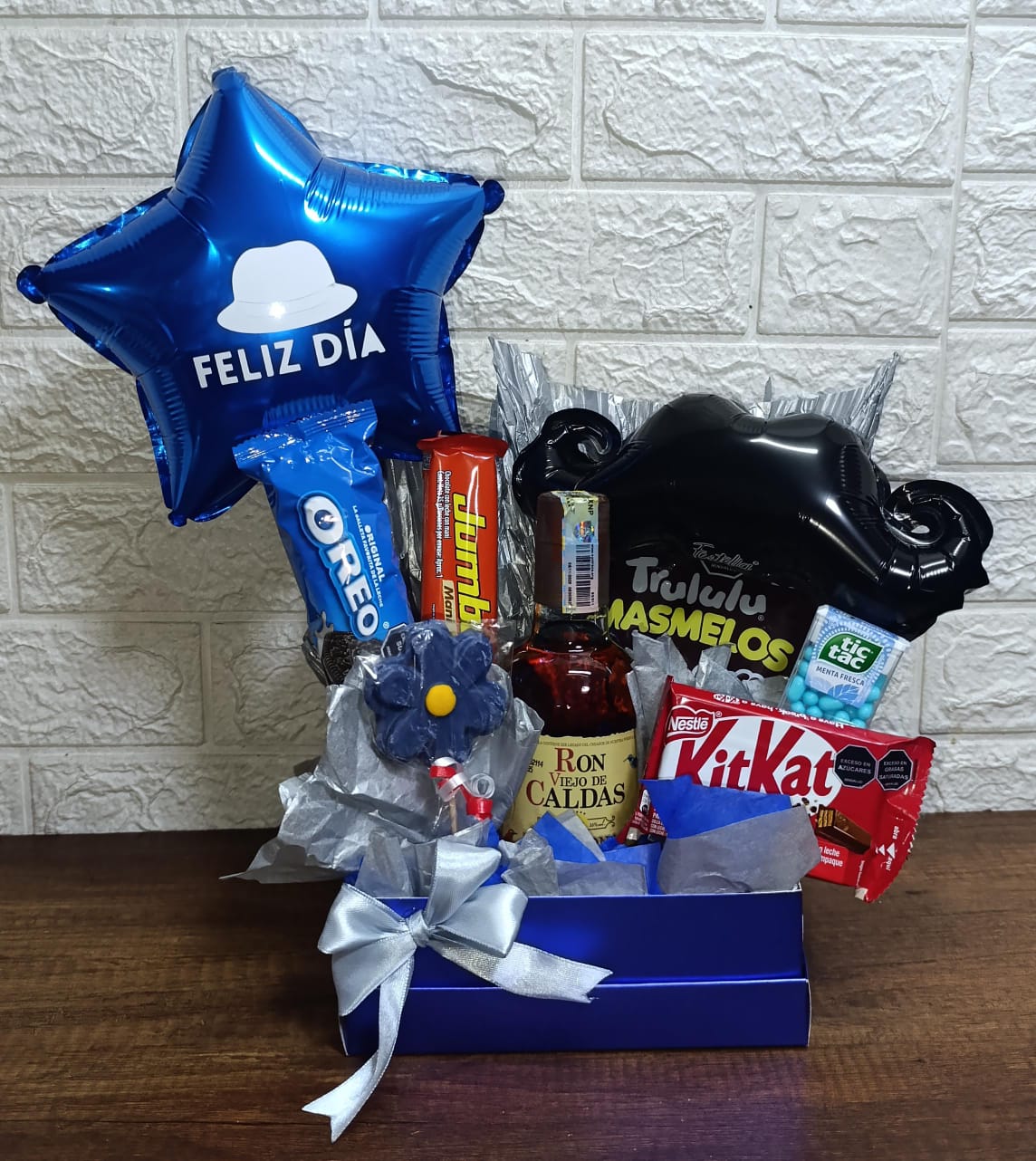 Caja de Regalo Especial Feliz Día con Ron, Dulces y Globos