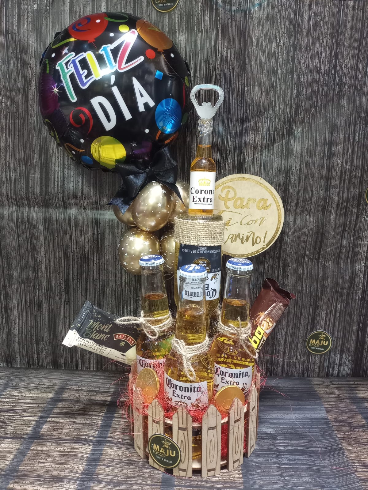 Celebra cualquier ocasión con esta cesta de regalo 'Feliz Día' que incluye seis cervezas Coronita Extra, un destapador único, dulces variados y un globo festivo. El detalle perfecto para alegrar su día.