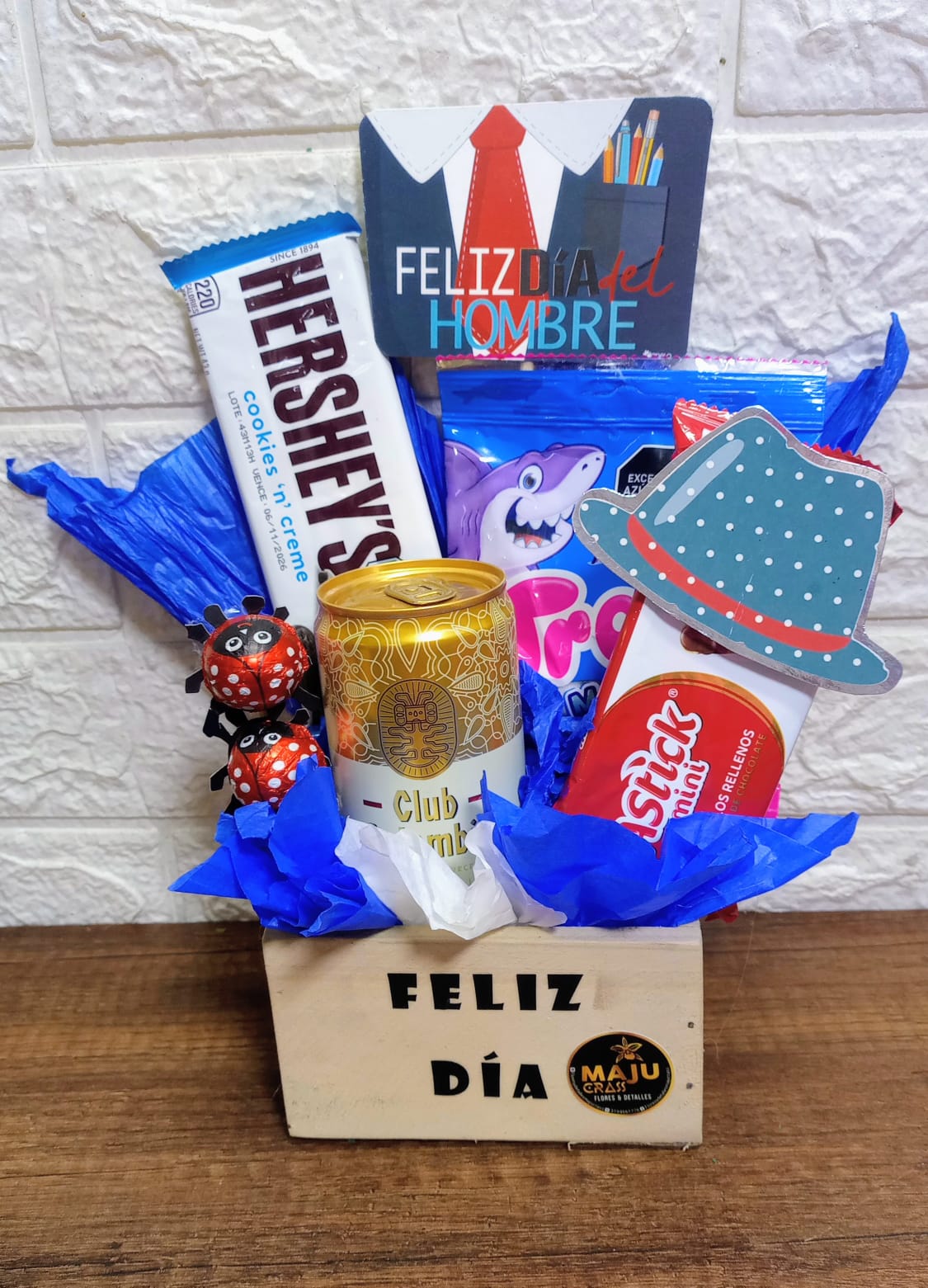 Sorprende con esta caja de regalo especial para el Día del Hombre. Incluye dulces, chocolates Hershey's, cerveza Club Colombia y detalles únicos para celebrar a ese hombre especial en su día.